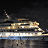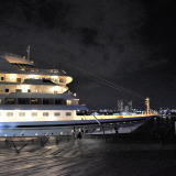 飛鳥Ⅱは,横浜を母港とする日本最大の客船です。 “飛鳥Ⅱ”は,日本郵船グループ・クリスタルクルーズの “クリスタル・ハーモニー”(三菱重工・長崎1990年竣工)を改装し,2006年1月に就航しました。 飛鳥Ⅱは,シンガポールでのリニューアル工事を終了し,2020年4月1日に横浜港・大さん橋に帰港しました。 新型コロナウイルス影響により,そのまま停泊しています。 デッキには,“海が心をつなぐ がんばろう! 日本”の横断幕が掲げられています。 停泊中の飛鳥Ⅱを夜間撮影しました。 |