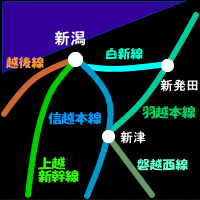 1995年/平成7年1月26日,信越本線 新潟駅で, 降雪の中を発着する485系,115系,キハ110系を撮影しました。 115系は新潟地区塗色でした。 当時の新潟駅は,新幹線ホームが高架,在来線ホームが地上にあり, 在来線の信越本線,白新線,越後線が接続していました。 当時の昼行特急は,北陸特急 雷鳥,北越,白鳥, 羽越本線直通“いなほ”が発着しました。 新潟駅の高架工事が進められており 在来線の3面5線の高架ホームが2021年度に完成予定です。 |
