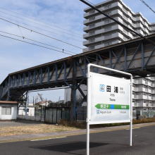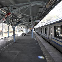 田浦駅は,1904年/明治37年に開業のJR東日本・横須賀線の駅です。地上島式ホーム1面2線の橋上駅です。木造ホーム建屋は戦時中に建設され廃レールが利用されています。 ホームの両端がトンネルに挟まれ,11輌編成の列車は先頭車がトンネル内に停車,ドアストップします。横須賀側には,明治・大正・昭和に建設の3つのトンネルがあります。真ん中のトンネル(横須賀線下り線)は,横須賀線開通時の明治22年に完成の最古トンネルです。上り線のトンネルは複線化された大正13年完成のものです。残るトンネルは昭和18年に完成の引込線用です。 |