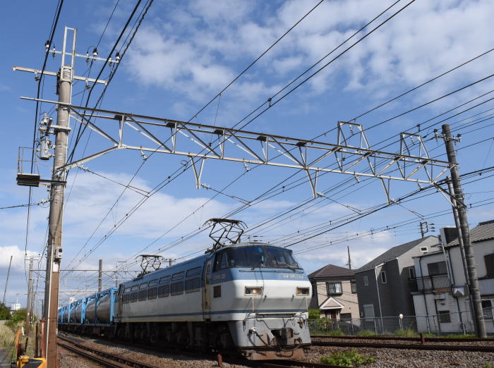 EF66 100番台の塗色は,青空と白雲によく似合います。