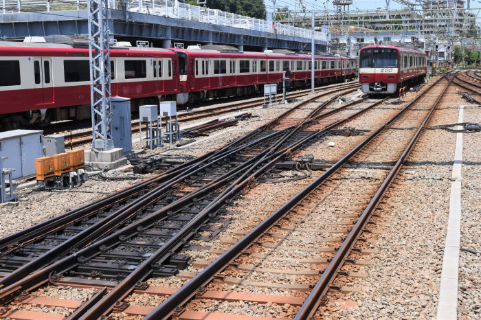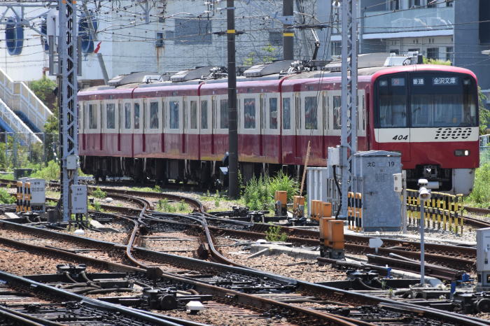 | 横須賀方向のダブルスリップポイント,留置・1000形・1401F編成(1404) 2021.6.10 金沢文庫 | ||