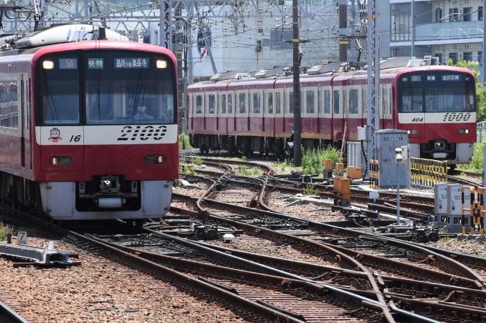 | 横須賀方向のダブルスリップポイント,2100形・2109編成,1000形・1401F編成 2021.6.10 金沢文庫 | ||