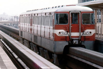 東京モノレールの開業では, 車体長さ10mの 100形・200形・300形・350形 33輌が投入されました。 輸送力増強のため 車体長を10mから15mに延ばした 500形26輌が赤と白の塗色で 1969年/昭和44年から投入されました。 500形は22年間活躍しましたが, 1991年/平成3年に引退しました。 当時の500形電車を 1975年/昭和50年に撮影しました。 |