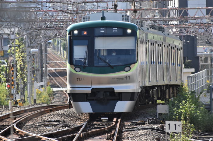 | 蒲田駅を発車する多摩川線7000系・池上線1000系 2021.10.15 蒲田〔東急電鉄 多摩川線・池上線〕 |