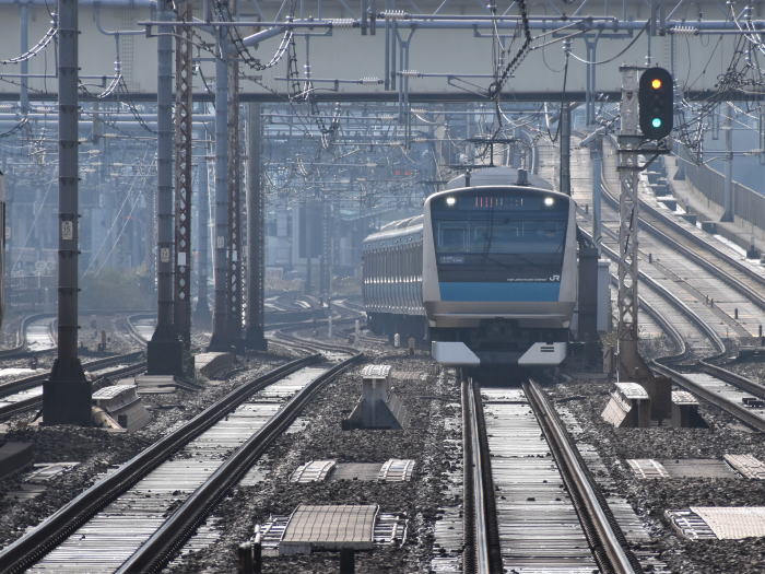 東京駅を発車して神田駅に接近する京浜東北線E233系快速を撮影しました。