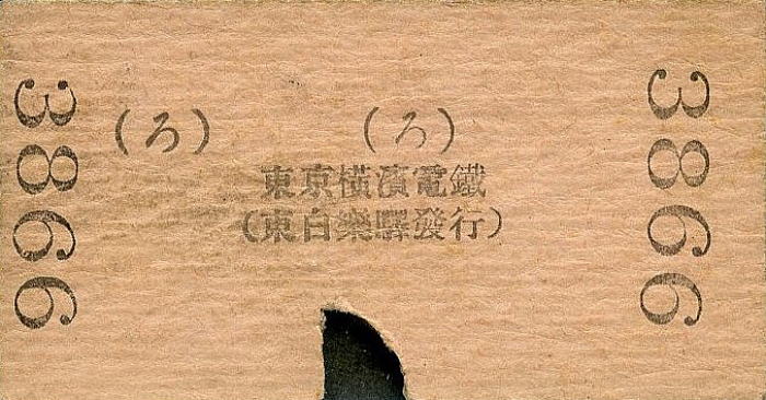 | 東京横濱電鐵 東白楽から横濱ゆき乗車券 1928年/昭和3年12月9日 東白楽驛発行 | ||