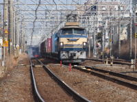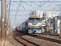 ワクワク・ドキドキ! 貨物列車運行情報アプリ(貨物ちゃんねる)で,EF66 27通過情報をキャッチ! "EF66 27牽引の東海道下りコンテナ列車1097レ 辻堂14時42分通過" 通過予定時間の30分前, 14時10分に辻堂-茅ヶ崎間の撮影ポイント:異人館踏切にスタンバイ, 14時40分,望遠ズームレンズの焦点距離を最長(35mm換算450mm)にして 上り方向を監視, 14時43分22秒,辻堂駅付近に輝くヘッドライトを確認, 手前の踏切の警報機はまだ鳴動しておらず,車が通り,人も渡る ファインダにEF66を確認,EF66は少しずつ大きく,シャッターを切る 異人館踏切の警音が鳴り,遮断機が下りる ファインダのEF66 27がさらに大きくなり 望遠ズームレンズの焦点距離を調整しながら連写, EF66がファインダいっぱいになったとき,EF66 27が轟音と共に直ぐ側を通過 体を下り方向にターン,通過したEF66 27を追い撮影 14時43分33秒から45分28秒の126秒間の通過を50コマに記録しました。 撮り鉄の醍醐味はこのワクワク・ドキドキ! ![]() |
