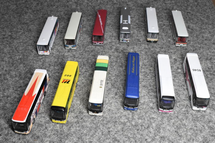 路線バスは,スタイル・塗色から活躍した時期・地域を特定できるため, THE バス・コレクションの収集により, 各地域を走った路線バスの歴史を感じることもできます。 THE バス・コレクション第27弾(2019.12発売)を紹介します。 日野セレガ,いすゞガーラのスーパーハイデイデッカー, 日野ブルーリボンのRU638BBハイデッカーが, 事業者の塗色でモデル化されています。 日野セレガは,2012年にマイナーチェンジされたスーパーハイデッカー QPG-RU1ESBA,QRG-RU1ASCA。 いすゞガーラは,2015年にマイナーチェンジされたスーパーハイデッカー QTG-RU1ASCJ,LKG-RU1ESB。 日野ブルーリボンは,1985年に大幅改良されたRU60/63系観光バス後期型の フルデッカーRU638BB。 日野セレガ ⇒ 弘南バス,アルピコ交通,阪急観光バス,西鉄バス いすゞガーラ ⇒ はとバス,三重交通,国際興業大阪 日野ブルーリボン ⇒ アルピコ交通,沿岸バス,夕張鉄道,JR関東,関東バス,奈良交通 |
