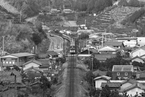 三野瀬-紀伊長島間の海沿いを列車は走り,トンネルに入ります。 小高い丘から俯瞰撮影しました。 前年に新設されたキハ82系特急“南紀”,キハ58系急行“紀州”, DF50牽引貨物列車を撮影しました。 |