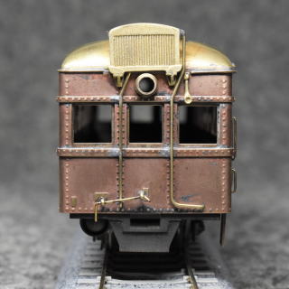 つぼみ堂模型店が1967年/昭和42年に発売した 鉄道省 ガソリン動車 キハニ5000形の真鍮製モデルです。 ・つぼみ堂模型店は1978年/昭和53年に廃業 このモデルは,学生時代に購入した塗装済組立てキットです。 組立てキットは,塗装済完成車体と下回り部品(床下機器・台車など)からなり モータを購入して完成させるものです。 駆動方法は,縦型モータと車軸をウォームギアで連動する方式です。 進行方向のヘッドライトを点灯するため,セレン整流器で制御しました。 50年超のモデルですが,カッチリとした車体で特段の痛みはありませんでした。 塗装をはがしてみると, 真鍮モデルの堅牢さと手作りの暖かさが見えます。 キハニ5000形は,鉄道省が1929年/昭和4年に製造した機械式ガソリン動車です。 閑散線区の単行運転用に, 旅客と荷物合造の2軸小型気動車として12輌が製造されました。 1939年/昭和14年に休車,機関を外して客車として運用, さらに貨車救援車となり,1960年/昭和35年に廃車になり形式消滅しました。 キハニ5005が苗穂工場で復元・静態保存されています。 |