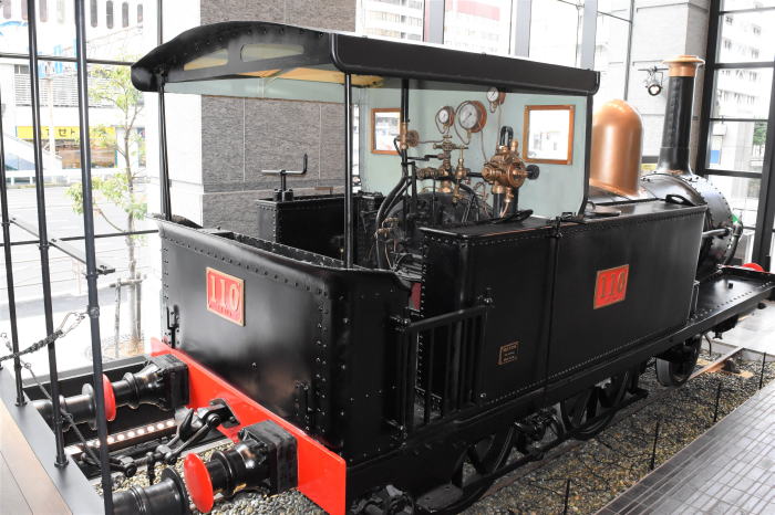 110形機関車は,1972年/明治5年の新橋-横浜間開業に際して 英国から輸入されたヨークシャー社・1971年製造の蒸気機関車です。 当初は10号機関車として運用され,1976年/明治9年に3号に改番, 京浜間から阪神間,京浜間,品川-赤羽間(日本鉄道)などに配置されたのち 1924年/大正13年に廃車,大宮工場に保管されていました。 1961年/昭和36年に鉄道記念物に指定,翌年に青梅鉄道公園に静態保存されました。 2020年/令和2年に,CIAL桜木町ANNEXの旧横ギャラリーに移設され, 実物大の中等客車レプリカとともに展示されています。 |