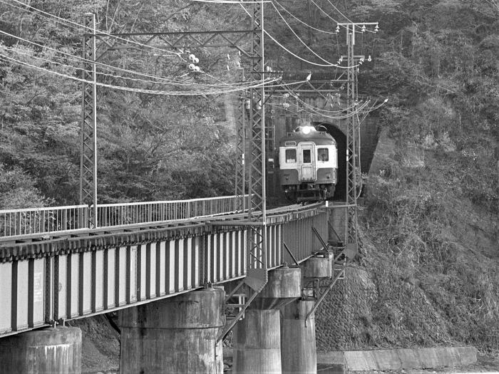 | 常葉川鉄橋を渡る普通列車/旧型国電 1981.4.8 波高島-塩之沢〔身延線〕 | ||