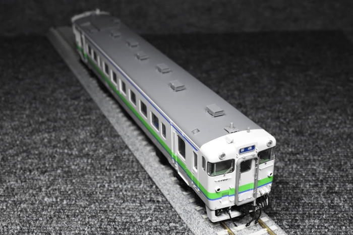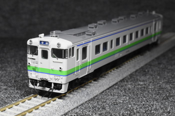 TOMIX/HOゲージ JR北海道 キハ40系1700番台の 精密プラスチックモデルです。 キハ40系は,1977-82年/昭和52-57年に888輌が製造, 日本全国各地に運用された一般形気動車です。 北海道用の酷寒地仕様として製造された100番台は, 1994年までにワンマン運転対応改造されて700番台に改番されました。 さらに,700番台を長期使用のため, 延命対策工事を施して1700番台に改番され, 苗穂,苫小牧,釧路,函館,旭川に83輌が配置されました。 後継のH100形の投入などにより,1700番台の廃車が進行しています。 モデルのプロトタイプは,前面下部のタイフォンが撤去された近年の形態で 旭川運転所・釧路運輸車両所の所属車です。 車番インレタや付属パーツ(ホイッスル・列車無線アンテナ)の取付け位置などで 特定車を作り分けすることができます。 このモデルは,釧路運輸車両所所属 キハ40-1765としました。 爽やかなJR北海道塗色の気動車です。 |
