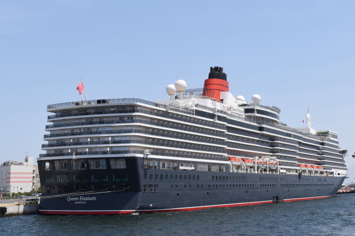 クイーンエリザベスは,英国キュナードラインが運航するクイーンエリザベスの名を継ぐ3代目客船です。 イタリアのモンファルコーネ造船所で,2010年に竣工しました。 2023年は,キュナードラインの客船ラコニアが始めて横浜に寄港してから100周年になります。 新型コロナパンデミックの影響で休止していた横浜発着クルーズを4年ぶりに再開しました。 |
