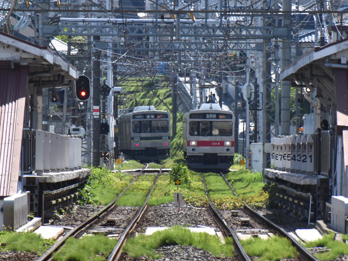洗足池駅付近の踏切から,洗足池駅に発着する上り下り列車を撮影しました。