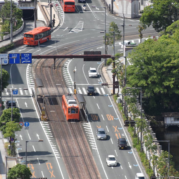 | 2100形(2101) 2023.5.27 南堀端-市役所前-県庁前 〔伊予鉄道 城南線〕 |