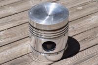 ●気動車DMH17/ピストン Last Update 2024.6.1 国鉄気動車の標準エンジンDMH17のピストンヘッドです。 キハ80,58,17,20,35,45系に搭載されました。 DMH17は排気量17L,8気筒,180馬力でした。 このピストンは新潟鐵工所製造のピカピカの未使用品です。 |