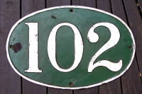 ●京福電車・楕円番号板 Last Update 2006.12.1 京福電車 嵐山線・北野線に活躍した 路面電車モボ102の車体側面の番号板です。 モボ102は,1929年/昭和4年製造です。 1975年/昭和50年の車体更新のとき,この番号板は外されました。 |