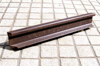 ●明治・ドイツ生まれのレール Last Update 2006.6.1 “KRUPP GERMANY 1890” 1890年/明治23年,ドイツ・クルップ社が製造したレールです。 外されたレールは,駅舎・跨線橋などの骨材に使用されました。 このレールは,旧国鉄釧路駅車両保管倉庫に使用されていましたが, 倉庫が解体され,廃材して排出されました。 |