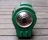 ●蒸気機関車 速度計 Last Update 2009.3.1 蒸気機関車の速度計は, ずっしりと重い鋳鉄製の筐体に組み込まれた機械式です。 動輪からロッドで回転を受けます。ロッドを回すと音が聞こえます。 この速度計は,D51用です。最高速度の目盛は,120kmです。 |