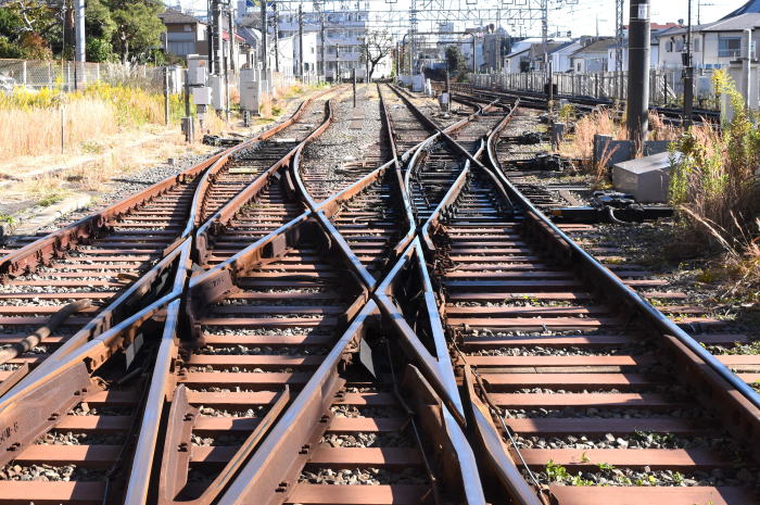 | 番線と上り本線を結ぶシングル・スリップポイント 2023.12.4 桜上水 〔京王電鉄 京王線〕 | ||