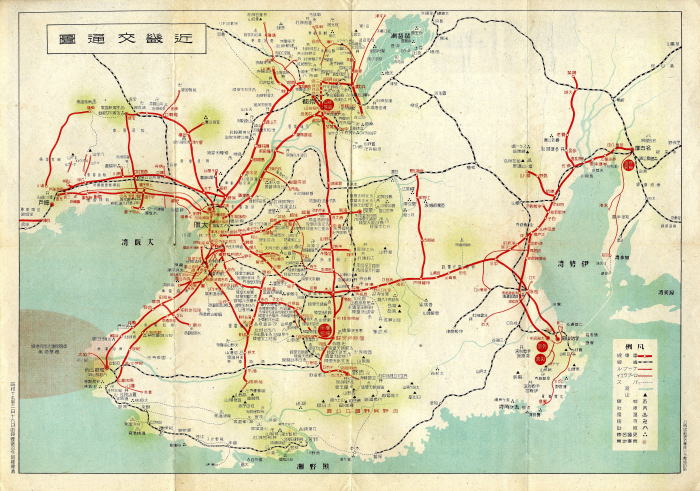 | 近畿の電鉄・7私鉄の路線図 1940年1月 阪神電車・阪急電車・京阪電車・南海電車・大鉄電車・阪和電鉄・大軌参急電鉄 |
