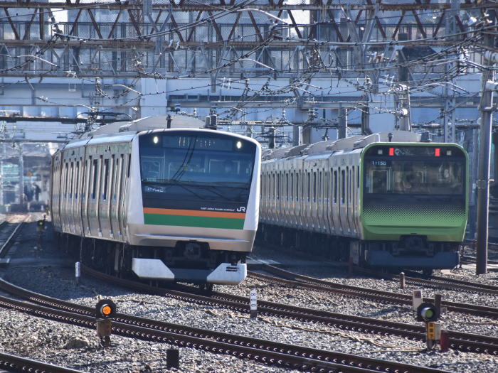 日暮里駅の常磐線ホームから東北本線E233系3000番台と山手線E235系を撮影しました。