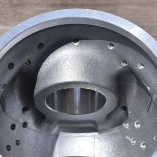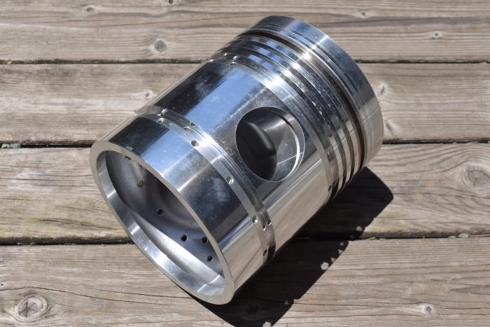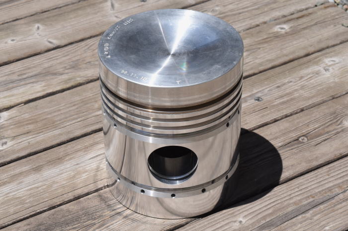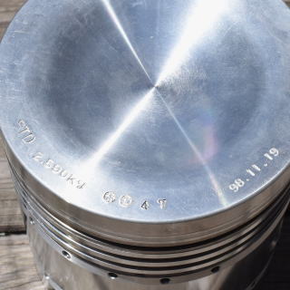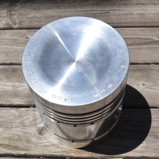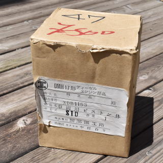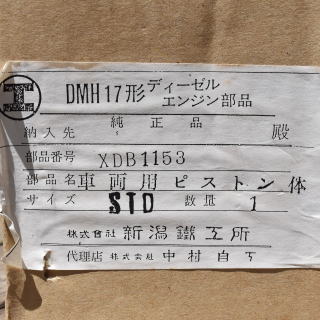 国鉄時代の気動車に搭載のディーゼルエンジンDMH17のピストンヘッドです。 新潟鐵工所製造のアルミ合金製の未使用・ピカピカ部品です。 DMH17は国鉄気動車の標準エンジンとして1951年/昭和26年に開発, 1971年/昭和46年まで製造され,特急型キハ80系,急行型キハ55系・58系, 一般型キハ17系(10系),20系,35系,45系(23系)などに搭載されました。 動力近代化により気動車は全国を走りDMH17のエンジン音が響きました。 DMH17は排気量17L,8気筒,定格出力は150馬力でした。 1958年/昭和33年に180馬力に改善されましたが, 走行性能は十分でなく,大出力エンジンの開発が急がれました。 1966年/昭和41年に大出力エンジンを搭載したキハ90・91形を試作, 6気筒・180-300馬力のDMF15HZA,12気筒・500馬力DML30HSAを完成, 特急型キハ181系,急行型キハ65系,一般型キハ40系に搭載され, DMH17の時代が終わりました。 |