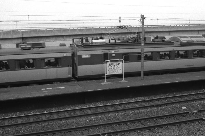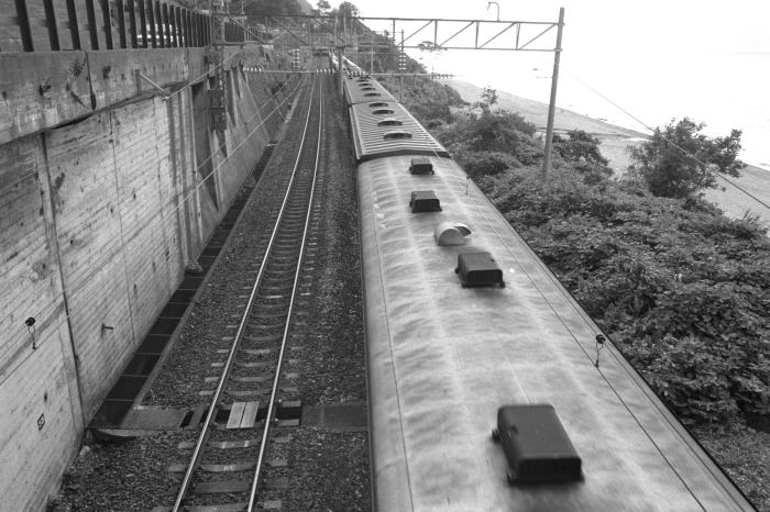 | 北陸本線の親不知で列車撮影しました。 難所として知られている親不知ですが, 1965年/昭和40年の泊-糸魚川電化のとき新線に切り替えられました。 線路は山が迫る海岸沿いに続くトンネルを走ります。 当時,北陸本線の交流電化区間である富山-糸魚川間には, 昼行急行はなく,〔夜行急行は能登(上野-金沢),きたぐに(大阪-新潟)〕 485系特急: 白鳥(大阪・福井-青森),雷鳥(大阪-新潟),北越(金沢-新潟), 489系特急: 白山(上野-金沢) および 475系普通列車,EF81・EF70牽引普通客車列車が運転されていました。 |