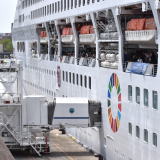 パシフィック・ワールドは,日本のジャパングレイスが2021年からチャータしているクルーズ客船であり ピースボートクルーズの世界一周クルーズに就航しています。 今回は,第117回ピースボート地球一周の船旅(横浜発着104日間)に出港のため寄港しました。 パシフィックワールドは,元プリンセス・クルーズのサン・プリンセスです。 サン・プリンセスは,プリンセスクルーズが大型化に乗り出した77000総トンシリーズの第1船でした。 竣工当時(1995年)は世界最大の客船であり,客船史上でも第4位の大型客船でした。 2013年から日本発着クルーズに投入され, 2014年はダイヤモンド・プリンセスと合わせた2隻体制で日本発着クルーズを展開しましたが, 2015年からオーストラリアに通年配船になり,日本から離れました。 2019年にJTBクルーズのチャータにより世界一周クルーズを実施しました。 |