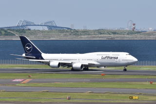 羽田空港(東京国際空港)には,国内線に加えて国際線の旅客機が発着します。 5月10日は,C滑走路から離陸するB747/ジャンボ機を撮影できました。 JAL,ANAからジャンボ機が引退して久しいですが, ルフトハンザドイツ航空は羽田-フランクフルト線に B747の最終モデルであるB747-8(2010年登場)を運航しています。 |