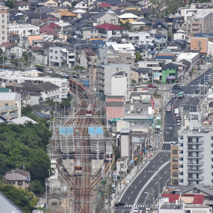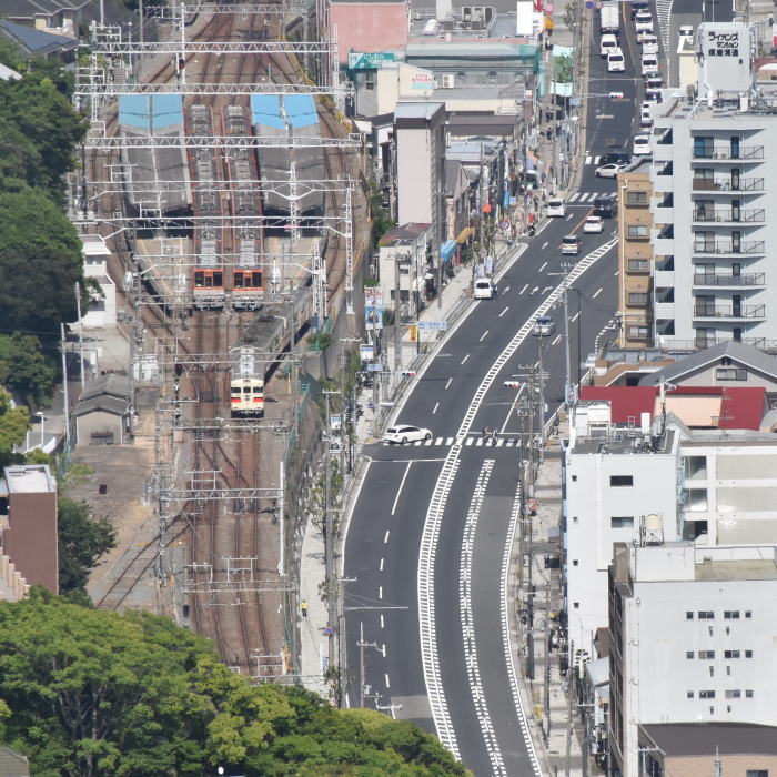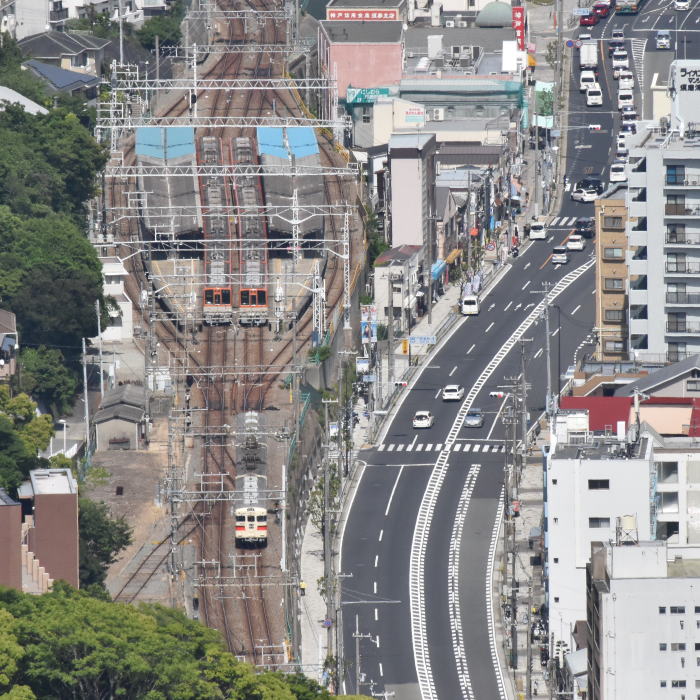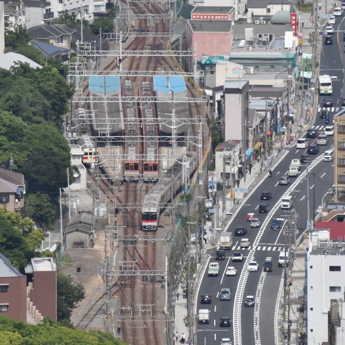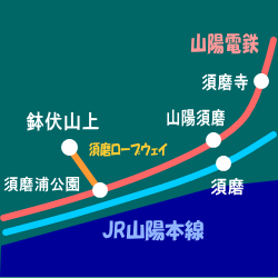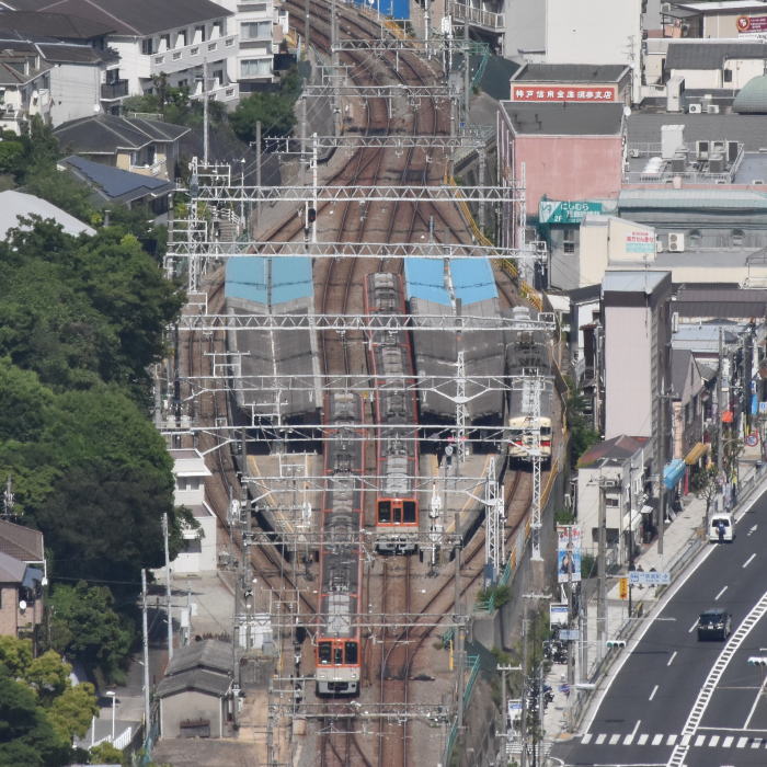 | 山陽電鉄・西空散歩 ◆鉢伏山上・須磨浦山上公園/東部展望台から 山陽電鉄 山陽須磨駅を発着する列車を撮影しました。 山陽須磨駅は島式2面4線, 内側2線が本線,外側2線が待避線になっています。 山陽電鉄の3000系,5000系,6000系などに加えて 阪神/大阪梅田-山陽姫路間の直通特急が運行されており 阪神電鉄の8000系,1000系も撮影できました。 |