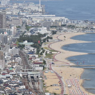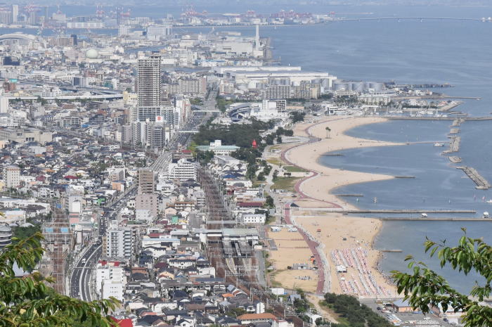 | 須磨浦/鉢伏山上空 ◆須磨浦ロープウェイの鉢伏山上・須磨浦山上遊園/東部展望台から 山陽電鉄,JR山陽本線を走る列車を撮影しました。 須磨浦ロープウェイ(全長466m,高低差181m)は, 山陽電鉄 須磨浦公園駅と鉢伏山上を約4分で結びます。 標高246mの鉢伏山上からは, 大阪湾,神戸市内,神戸空港,明石海峡大橋,淡路島などを 眺望できます。 西方向に山陽電鉄・山陽須磨駅,JR西日本・須磨駅を俯瞰でき, 頻繁に発着する列車を撮影できます。 |