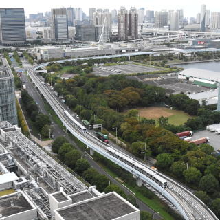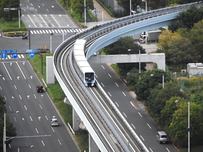 | 台場を発車した豊洲行7300系列車 2024.10.21 台場-東京国際クルーズターミナル〔ゆりかもめ〕 |