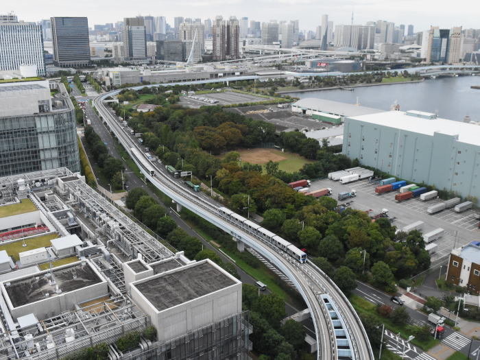 | 青海を発車した新橋行7300系列車 2024.10.21 テレコムセンタ-青海〔ゆりかもめ〕 |