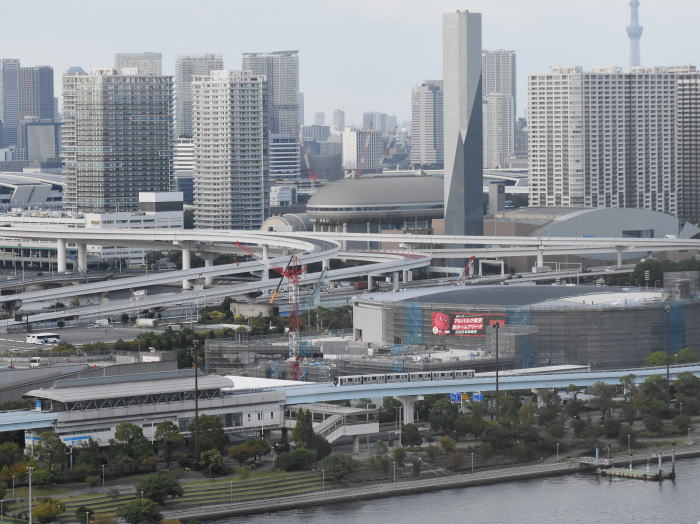 | ゆりかもめ・青海空散歩 ◆テレコムセンタ展望室から テレコムセンタ-青海-東京ビッグサイト-有明間を走る ゆりかもめ/7300系・7500系を撮影できます。 台場方向に較べて,建物に遮られることなく, 長区間に亘り列車を追うことができます。 このため,多彩な背景の中を走る列車を撮影できます。 |