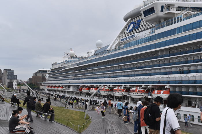 | 大さん橋を出港するDIAMOND PRINCESS(116000総t・英国船籍) 2024.4.27 | ||