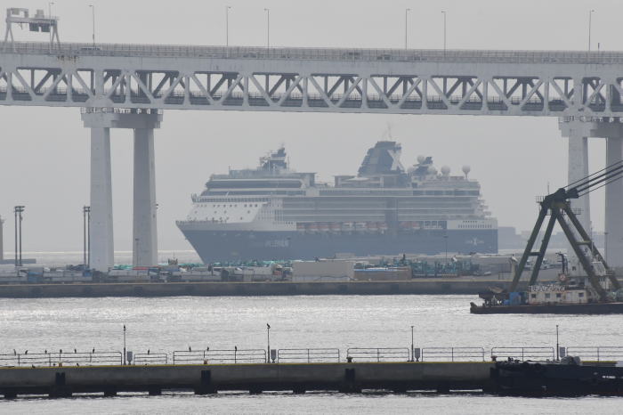 | 横浜ベイブリッジの向こうに出現したCELEBRITY MILLENNIUM (91000総t・マルタ船籍) 2024.8.18 | ||