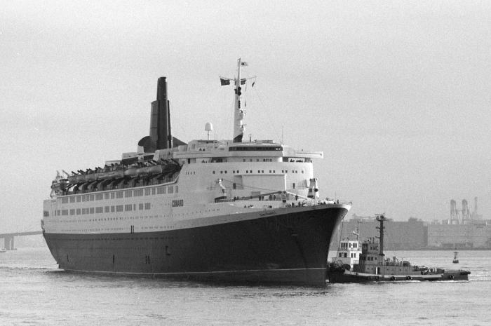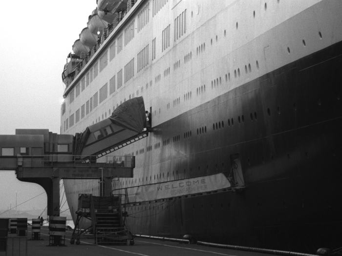 | 大さん橋に着岸するQE2 (英国船籍・69053総t) 1984.2.11 | ||
