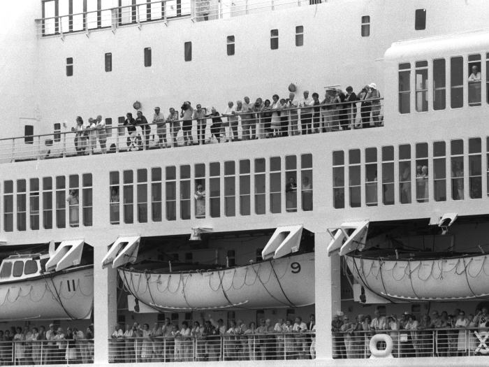 | 歓迎を受けるORIANA の乗客 (英国船籍・41920総t) 1985.9.14 |