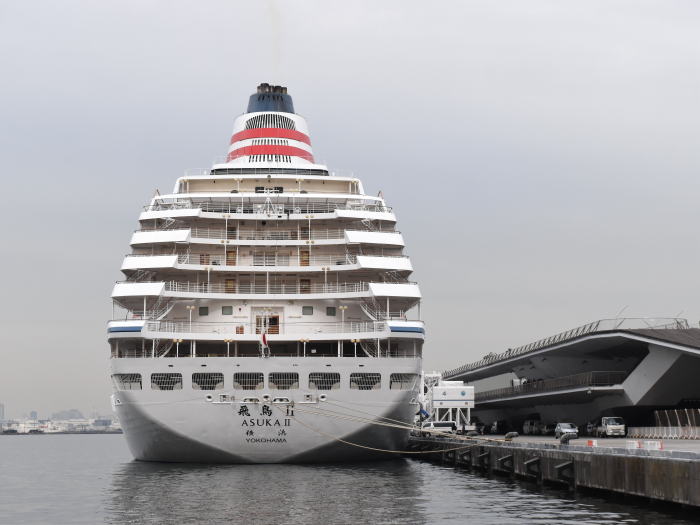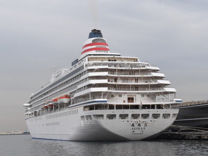 飛鳥Ⅱは,横浜を母港にする日本最大の客船です。 日本郵船グループ・クリスタルクルーズの “クリスタル・ハーモニー” (三菱重工・長崎1990年竣工)を改装し,2006年に就航しました。 飛鳥Ⅱの後継船 “飛鳥Ⅲ” がドイツで建造中であり,2025年の就航が発表されています。 |