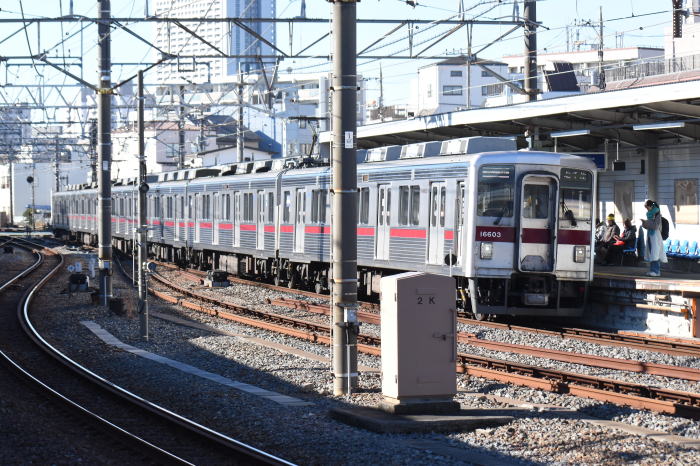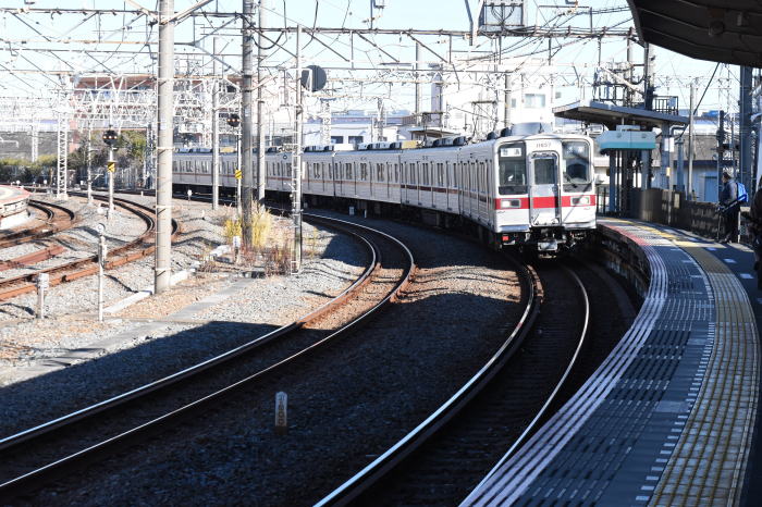 | 下り(北千住方向行き)ホームに到着する北千住行き普通/10000系(11603F) | ||