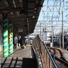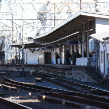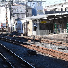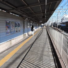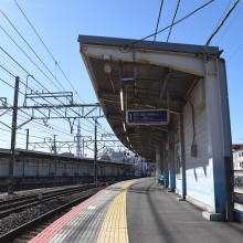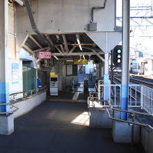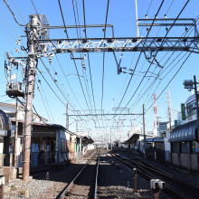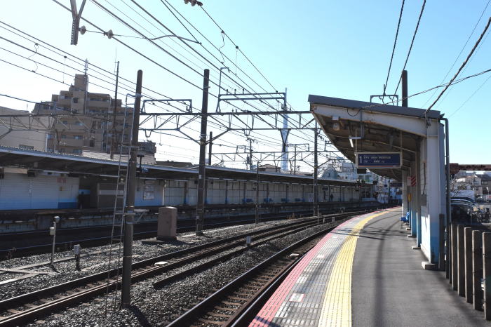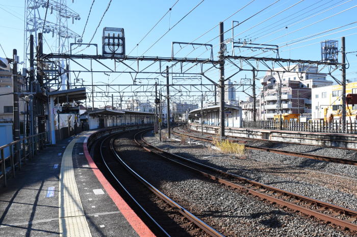 | 上り(浅草方向)の踏切から見る鐘ヶ淵駅構内(待避2線・通過2線) | ||