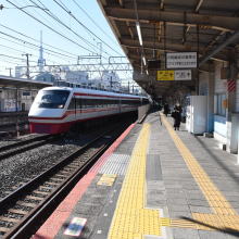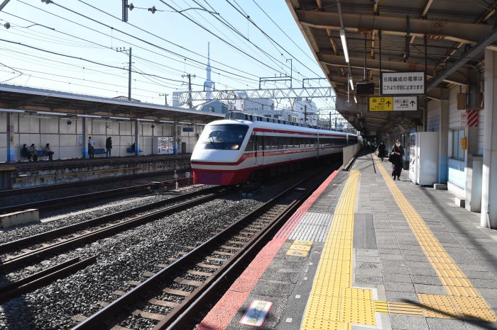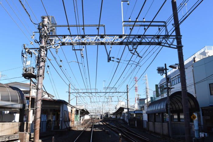 | 上り(浅草方向行き)ホームから見る構内全景 | ||