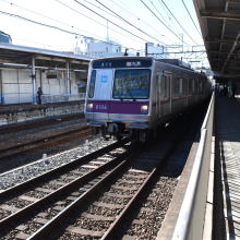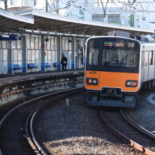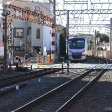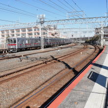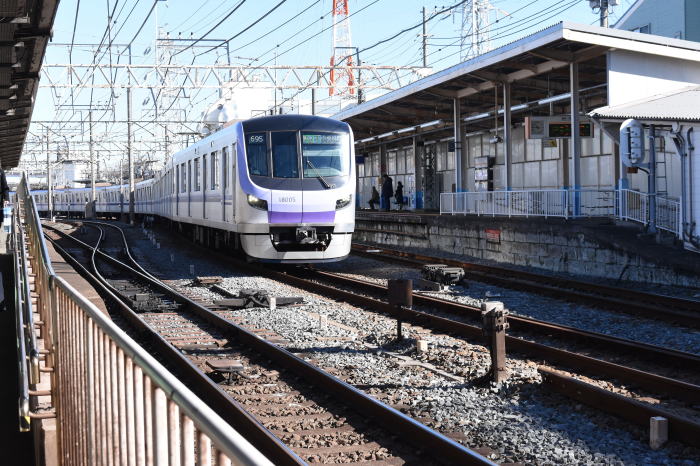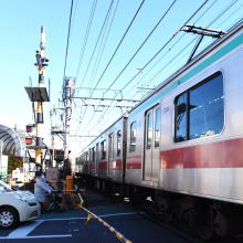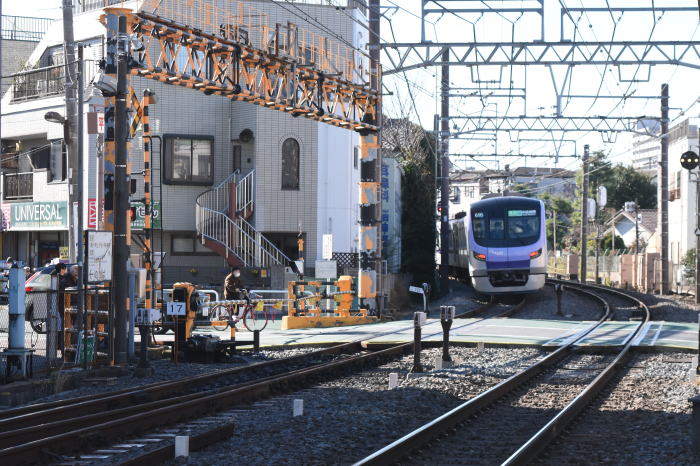 | 上り(浅草方向)の踏切を行く中央林間行き準急/東京メトロ18000系(18105F) | ||