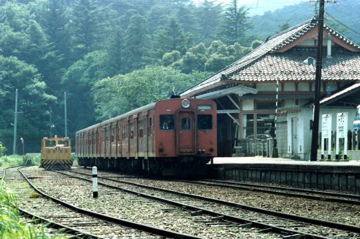 1982年夏,新潟県・弥彦で,国鉄/弥彦線の列車,新潟交通のバスを撮影しました。 弥彦駅は,国鉄/弥彦線(弥彦-東三条,17.4km)の起点駅であり 1916年/大正5年に越後鉄道(1927年/昭和2年に国有化)が, 弥彦-西吉田(現 吉田)を開通した時に開業しました。 弥彦駅は彌彦神社の最寄り駅として 駅舎は,開業時のままに,本殿を模した木造寺社造り(入母屋造)になっています。 当時は,非電化であり,1962年からキハ35系が運用されていました。 1984年に電化,弥彦塗色の115系,E127系が2022年3月まで運用されました。 現在は,新鋭E129系が運用されています。 弥彦駅付近で,新潟交通の路線バスと観光バスを撮影しました。 観光バスは日野RV系で,当時,塗色変更中のため新旧塗色のバスを撮影しました。 |