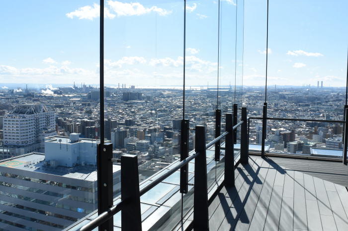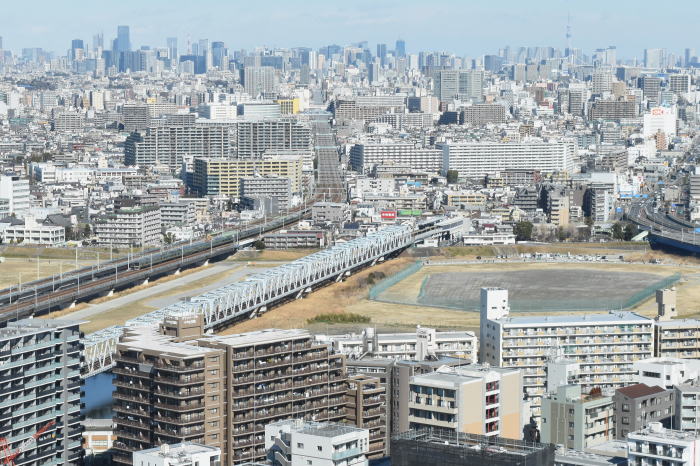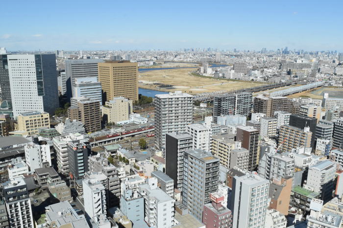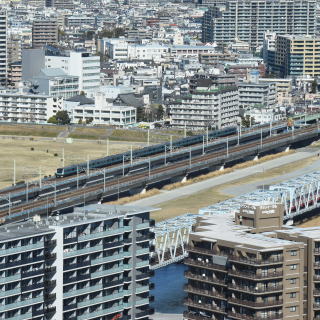 | 川崎/多摩川・京急線上空 ◆川崎市役所の25階・展望ロビー・スカイデッキから JR東海道線の多摩川(六郷川)橋梁を走るJR列車, 京急川崎駅を発着する京急列車を撮影しました。 展望ロビーとスカイデッキは 年末年始を除く毎日の9-21時に利用できます。 屋内の展望ロビーと屋外のスカイデッキは ビルを周回するように配置されており 360°の視界を楽しめます。 川崎市役所新庁舎は2023年6月竣工 |