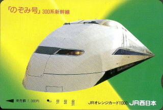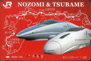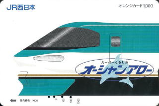 JR西日本が発行した新幹線と特急に関わるオレンジカードなどです。