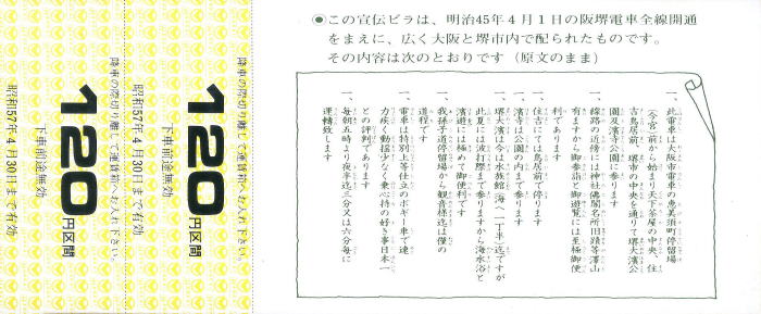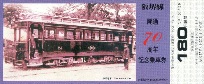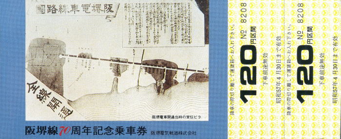 | ◆阪堺線開通70周年記念乗車券 1982年/昭和57年4月1日 阪堺電気軌道発行 | ||