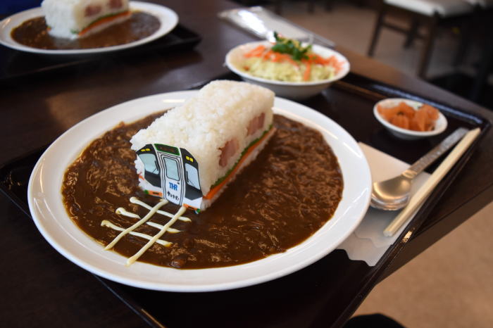 天竜浜名湖鉄道は, 昭和国鉄時代の鉄道施設を保有, 鉄道遺産36施設が 登録有形文化財に登録されています。 国鉄時代の施設を鉄道遺産として 歴史価値をアピールしています。 天竜二俣駅・運転区には, 駅舎,プラットホームと上屋, 転車台,扇形車庫などがあります。 これらを見学するツアーに参加して 国鉄時代の雰囲気を楽しめます。 駅近くの食堂「十文字屋」の 転車台をイメージした “転車台カレー”が好評です。 見学ツアーとセットで楽しみました。 |